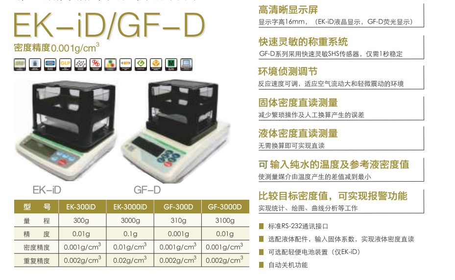 日本AND電子天平以EK-iD/GF-D系列為例的技術參數圖:Fis廣州南創電子科技有限公司