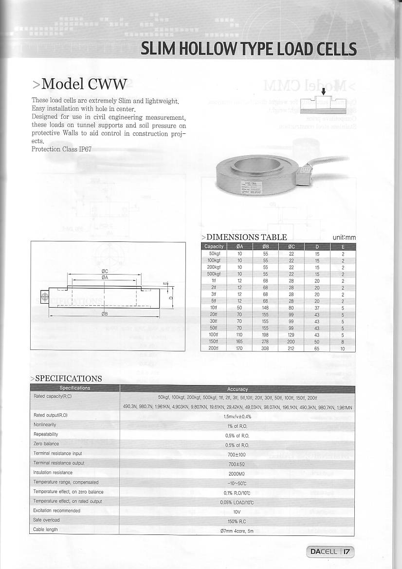 DAcell CWW 稱重傳感器技術參數(shù):