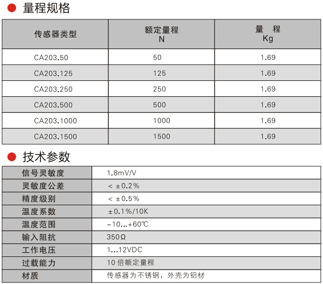 瑞士FMS CA203張力傳感器產(chǎn)品量程規(guī)格、技術(shù)參數(shù)圖: