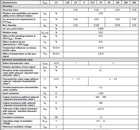 德國HBM力傳感器U10M/125kN產品技術參數:MSW廣州南創電子科技有限公司
