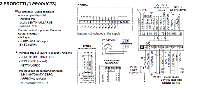3 logic inputs, 5 relay outputs