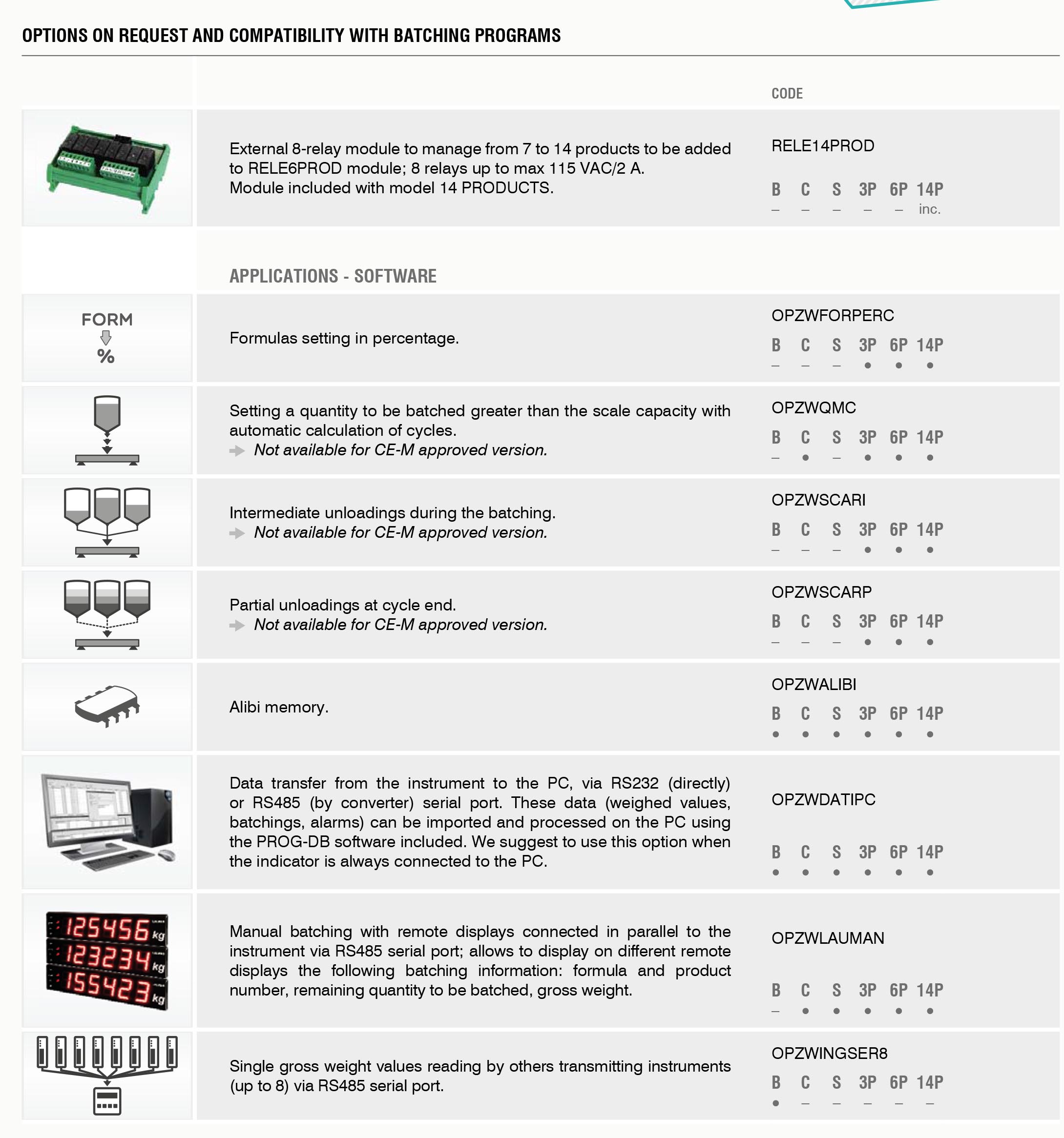 Multiprogram: single loading/unloading and multi-product batchings, max 99 formulas