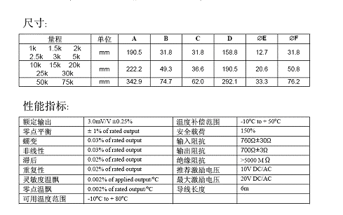 DBS-5klb傳感器,美國(guó)傳力Transcell DBS-10klb稱重傳感器技術(shù)參數(shù):