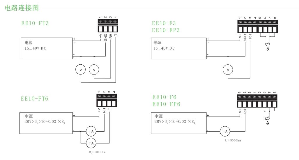奧地利E+E溫濕度傳感器其他相關系列產品介紹:溫濕度變送器多以溫濕度一體式的探頭作為測溫元件,將溫度和濕度信號采集出來,經過穩壓濾波、運算放大、非線性校正、V/I轉換、恒流及反向保護等電路處理后,轉換成與溫度和濕度成線性關系的電流信號或電壓信號輸出,也可以直接通過主控芯片進行485或232等接口輸出。