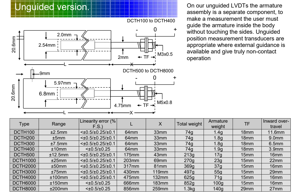 lNb廣州南創電子科技有限公司lNb廣州南創電子科技有限公司英國RDP位移傳感器 DCTH系列位移傳感器所有量程如下:
